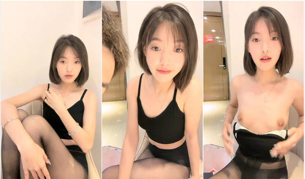 短發氣質藝術生,性感黑色吊帶,胸部不大A罩剛好夠用,身材瘦瘦的肋骨都能看到,小茓毛茸茸