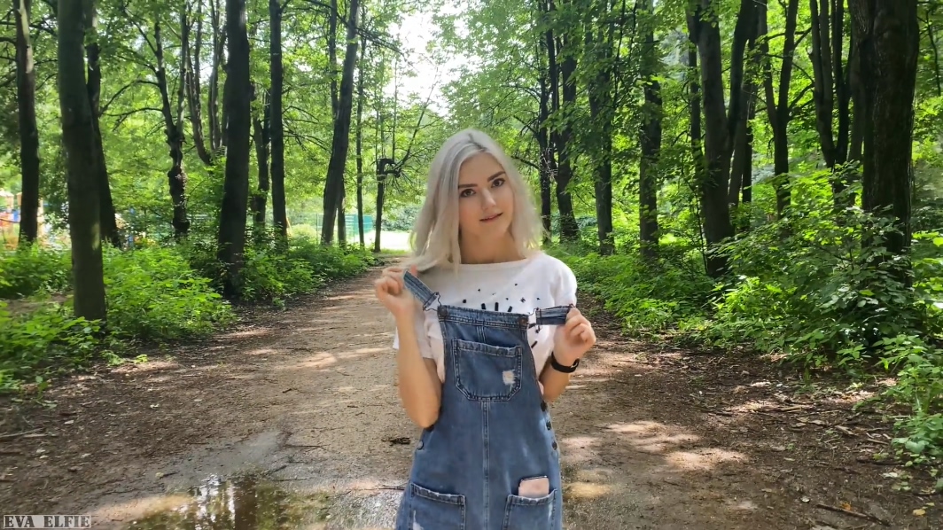 9月最新流出人气很高的网红八字巨乳嫩妹伊娃清纯牛仔连衣裙公园散步露出找个人少的地方啪啪野战